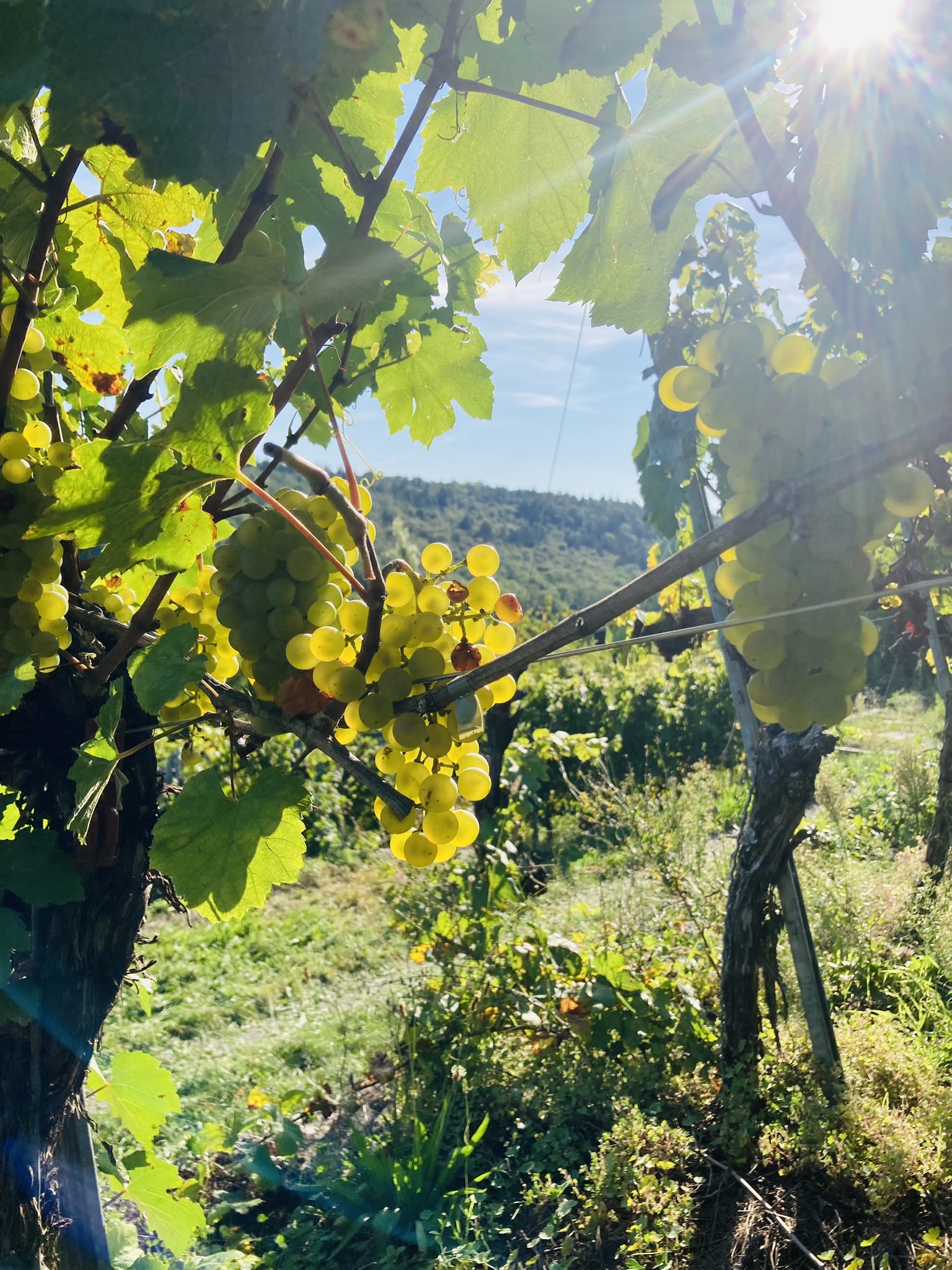Unser Weinberg liegt in einer klassischen Steillage, die in mühevoller Handarbeit bewirtschaftet wird. Der Terrassenanbau mit historischen Trockenmauern ist typisch für die Region und zugleich ein wertvolles Kulturgut. Die Mauern speichern tagsüber Wärme und geben sie nachts an die Reben ab – ein natürlicher Klimapuffer, der die Reifung positiv beeinflusst und das Mikroklima begünstigt. Gleichzeitig bieten sie Lebensraum für zahlreiche Tier- und Pflanzenarten.